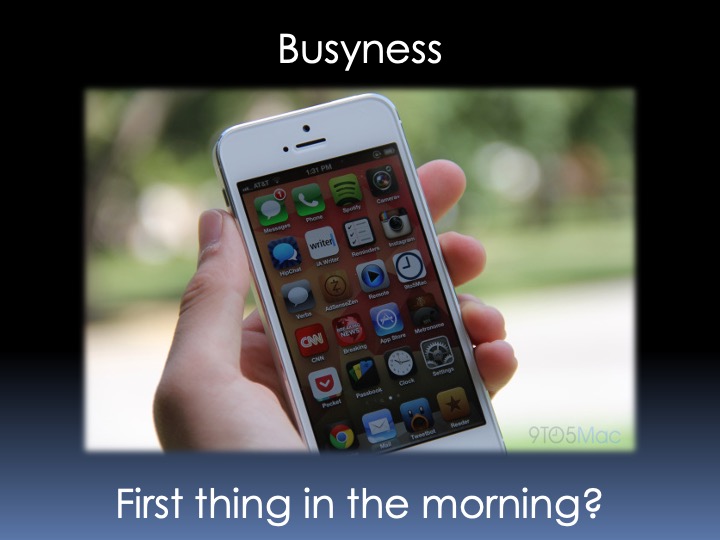 The book is about how a young aggressive devil is trying to ruin mankind. The evil, Satan says, “I’ve got a bigger plan, I will keep people SO busy that they won’t be able to hear the voice of God.” That was in 1940 before the iPhone was even around. I’m not talking about spending three hours in solitude every day, but perhaps start your day with 5 to 10 minutes of quiet time to set your intentions for the day.